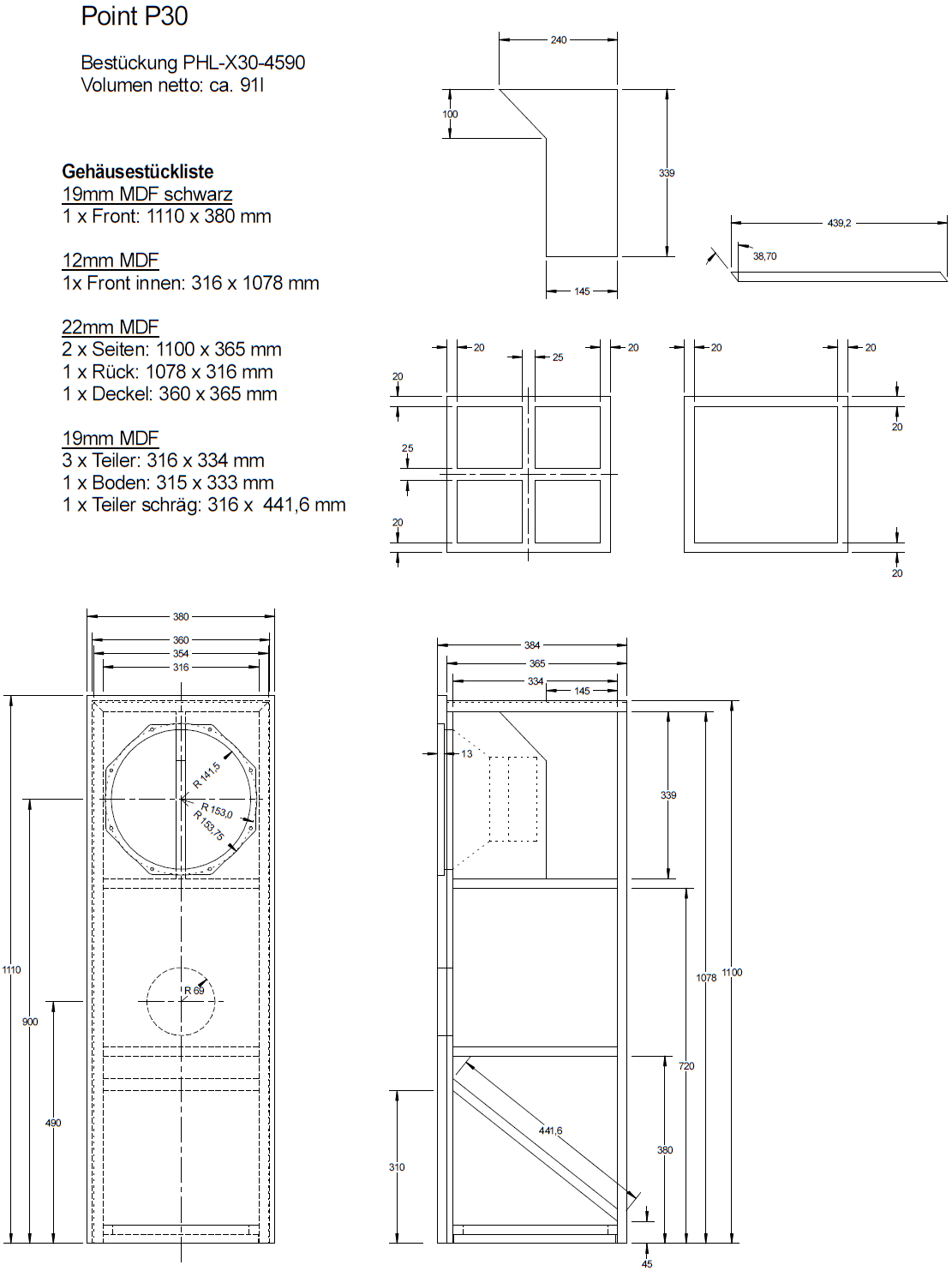 einem 30cm großen Koaxial-Chassis von PHL bestückt ist. Der Hochtöner,